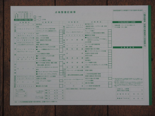 国の認証整備工場なので点検整備記録簿「健康診断記録」交付させて頂いています。