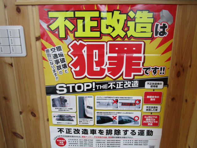 不正改造車「犯罪車両」の入庫はお断りしますのでご理解して下さい。