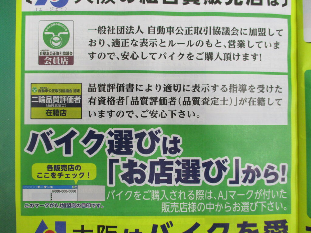 二輪正規販売店「数ではなく安心を販売して30年」ですので
